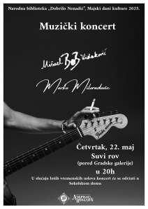 У оквиру манифестације Мајски дани културе Мишаел Боб Видаковић и Марко Милорадовић са својим бендовима ће одржати концерт у четвртак 22.05.2025. године у Сувом рову код Градске галерије са почетком у 20 часова. У случају лоших временских услова концерт ће се одржати у Соколском дому.