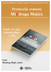 Народна библиотека “Добрило Ненадић” вас позива на један од програма Мајских дана културе , промоцију романа “Под туђим сунцем” аутора Миодрага Мајића која ће се одржати у Соколском дому 23.маја 2025. године у 19 часова.