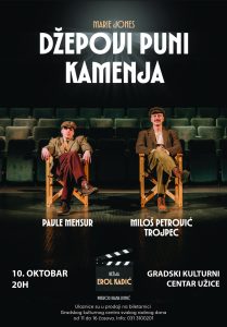 U saradnji sa kolegama i kulturnim ustanovama obaveštamo vas da ce se u petak 10.10.2025. u 20 časova u Gradskom kulturnom centru Užice igrati predstava”Džepovi puni kamenja”.