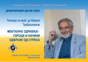 Позивамо вас на разговор МЕНТАЛНО ЗДРАВЉЕ – УЗРОЦИ И НАЧИНИ ОДБРАНЕ ОД СТРЕСА са проф. др Жарком Требјешанином у оквиру манифестације Добрилови дани . Уторак 28.10.2025. године у Соколском дому у 19 часова.